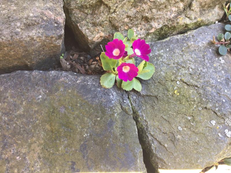 Vor ein par Jahren habe ich von einem Pflanzenmarkt eine sehr kleine Primel mitgenommen, weil ich Pflanzen für enge Steinspalten suchte. Seitdem blüht sie jedes Jahr. Aber wird auch nicht wesentlich größer. Vielleicht kann mir jemand sagen, wer sie ist.