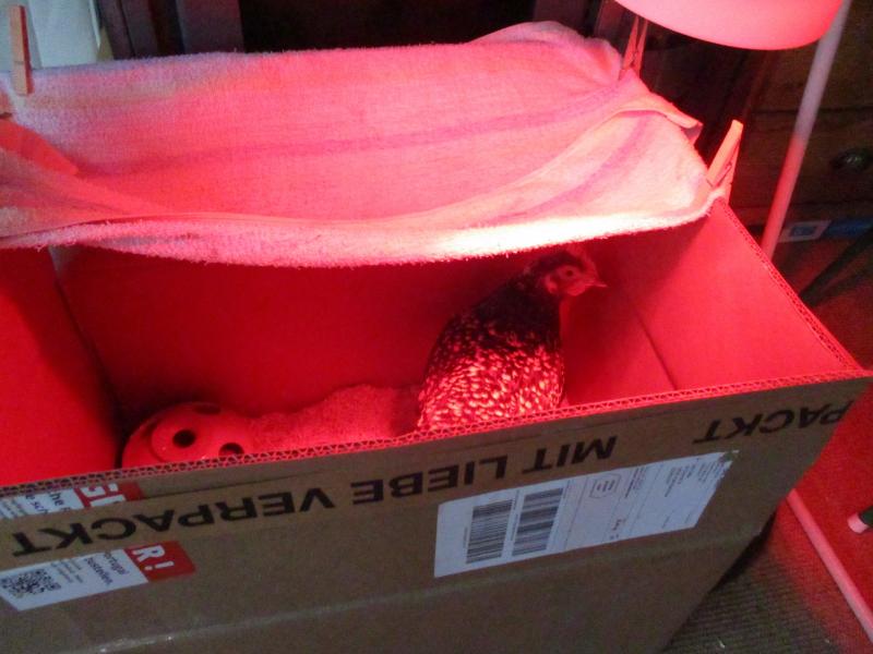 Quendula, ich glaube das mit dem Rotlicht ist nicht so eine gute Idee. (Das mit der Wärme ist natürlich eine sehr gute Idee! )wie ich gelesen hab können die Hühner dabei schlecht schlafen. Ich würde eine Dunkelstrahler Lampe besorgen. Oder eine Wärmflasche unter ein Handtuch legen.