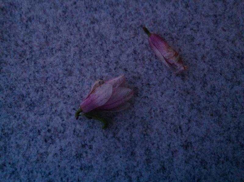 Ja, die eigentliche Blütemasse ist braun und in der Dämmerung nicht zu erkennen. 'Lennei' (im Vordergrund) ist ohnehin immer später dran und eine andere x soulangeana und 'Heaven Scent' an anderer Stelle scheinen sich noch passabel präsentieren zu wollen - wenn nicht doch noch Frost einen Strich durch die Rechnung macht.