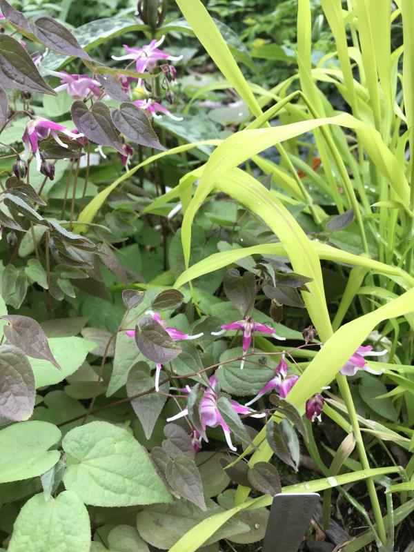 'Purple Pixie' öffnet erste Blüten über schönem Laub.