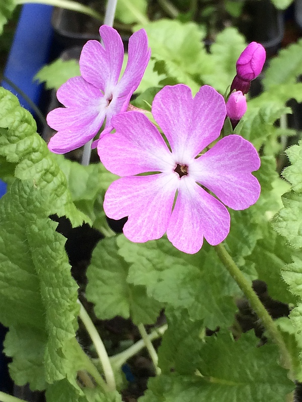 Noch ein Foto aus der Primelecke. Die blaue, ein Sämling von Barnhaven, scheint sich selbst schon versamt zu haben. Bei der dunkellaubigen daneben müsste ich erst schauen, wer's ist.