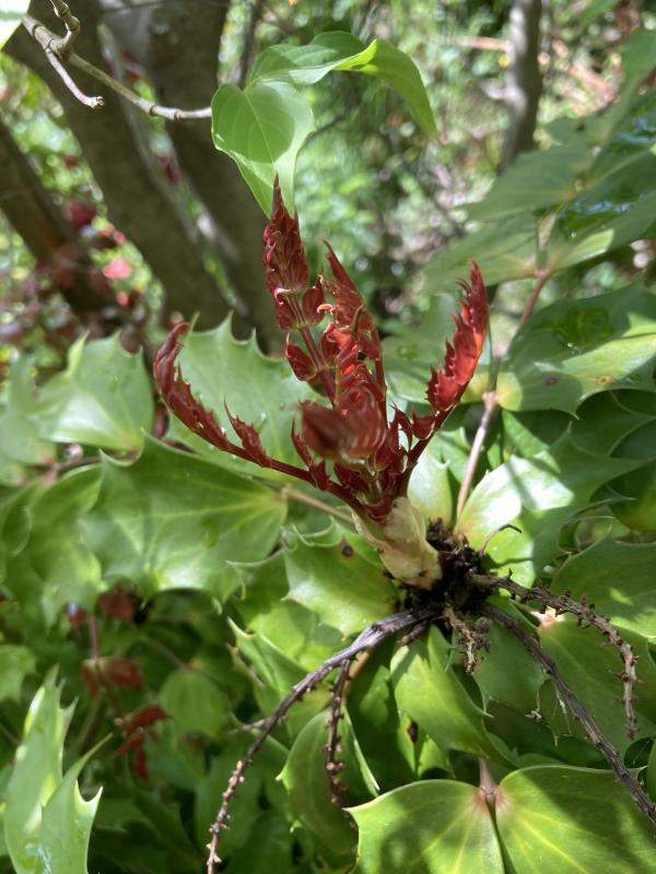 Sieht schön aus, der rote Austrieb zu den gelben Blüten !
