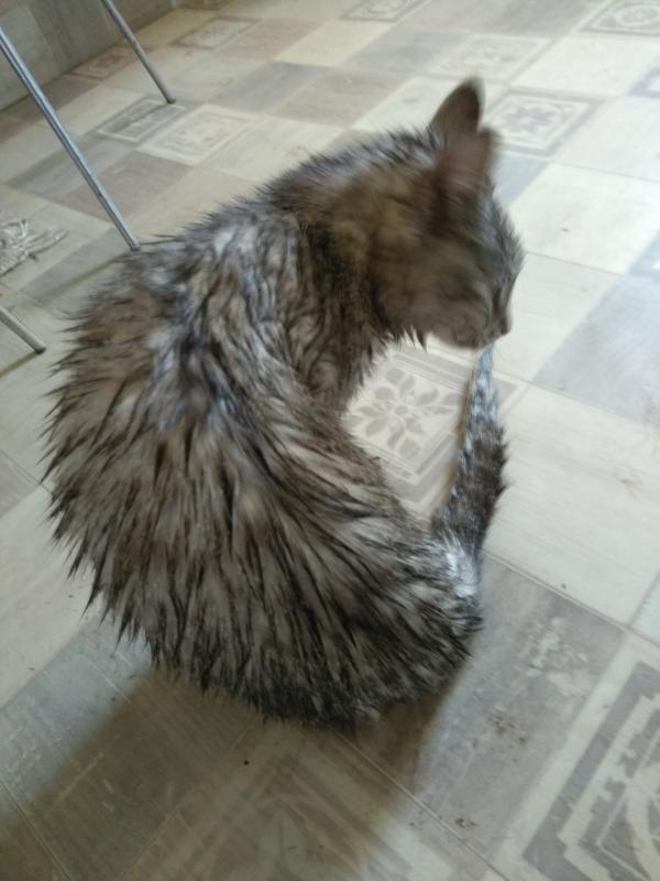 Unser Neuzugang, eh schon 8 Jahre und kein bisschen weise. Offensichtlich in das Überlaufbecken an der Straße gefallen