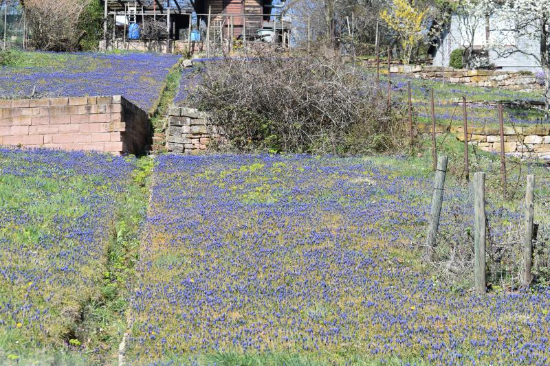 Toll! Das erinnert mich an die "Baurabiabla-Wiese" meiner Kindheit auf der Schwäbischen Alb. Es war ein Hang, den man von der Straße aus sehen konnte (Strecke Ulm-Schwäbisch Gmünd). Wir (und nicht nur wir) fuhren extra da hin, um Sträuße zu pflücken. Ach so: Baurabiabla oder Baurabüabla (also Bauernbüblein) ist der schwäbische Name für Muscari.