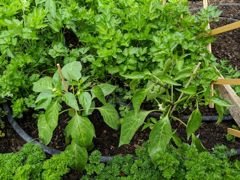 Nachdem keine Nachtfröste mehr angesagt sind, hab ich die Kälte empfindlichen Pflanzen in die Beete im Freiland gesetzt. Die Gewächshaushälfte mit den Melanzanis sieht jetzt richtig leer aus.