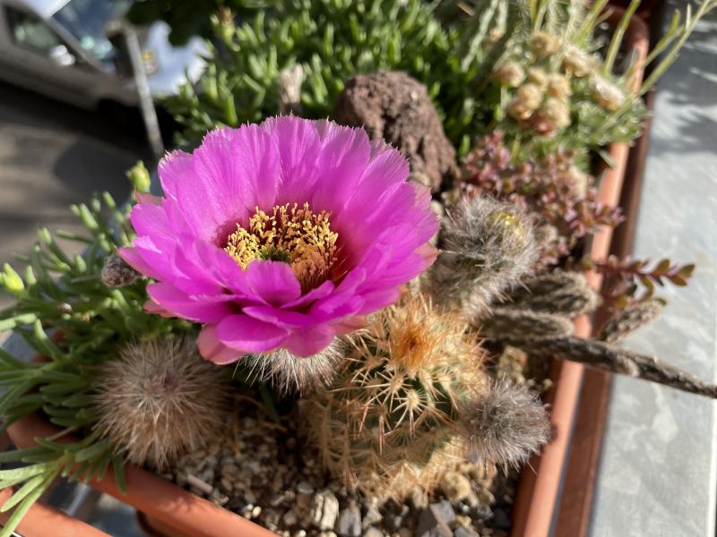 Während meines Urlaubs haben die Kakteen begonnen. Echinocereus baileyi hat fast ohne mich geblüht.