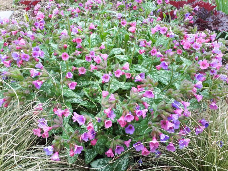 Vor einigen Jahren bekam ich einen Ableger des gemeinen Lungenkrauts Pulmonaria officinalis aus einem anderen Garten, das hat sich enorm vermehrt und deckt schon etliche Quadratmeter ab. Das ist der Hit bei den Hummeln. :D