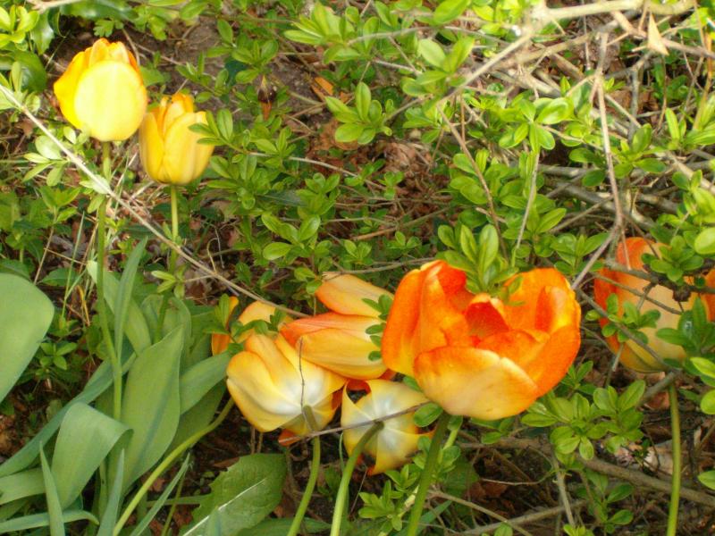 Meine Daydream-Tulpen mag ich sehr, anfangs gelb, dann immer mehr orange. Leider hat sie diesmal der Sturm umgeworfen.