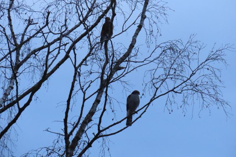 Der Aufbruch am nächsten Morgen war besonders im März von Angriffen hungriger Sperber geprägt, die in der nahen Birke lauerten.