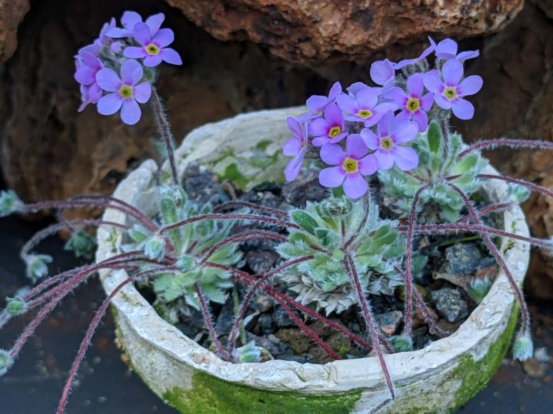 Androsace sempervivoides wächst bei mir nur mit intensiver Pflege. Das ähnliche A. sarmentosa dagegen wuchert förmlich.