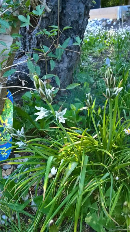Was da anfängt zu blühen halte ich aber für Ornithogalum, wahrscheinlich O. nutans.