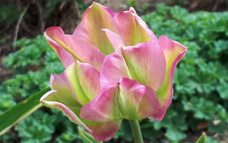 Hier ein erster Versuch wegen der Wühlmäuse ... Diese Viridiflora nennt sich 'Groenland'. Ich bin nicht sicher, ob sie eher wischwaschi rüberkommt oder doch etwas Apartes hat? Die Fernwirkung ist jedenfalls gleich null. Vielleicht sollte ich sie mit einfarbig pinken Tulpen kombinieren, was meint Ihr Tulpenspezis? :P