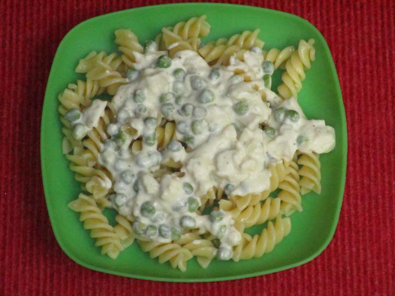 Spirellen mit Camembert-Erbsen-Soße - einfach und doch saulecker.