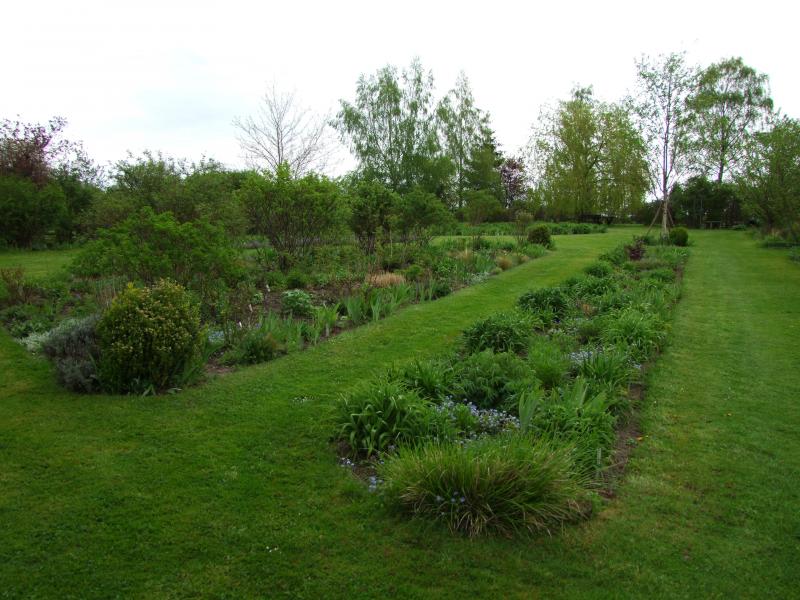 In den Beeten rechts blühen vor allem die Vergissmeinnicht und Polsterphlox