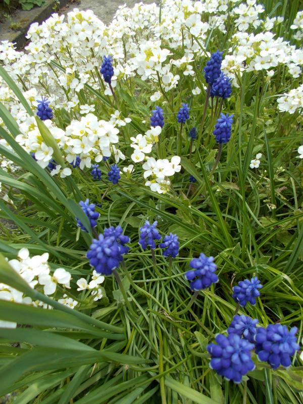Im Straßenbeet blüht die Zwergiris 'Music'. Beim Teilen angefallene kleinere Rhizome hatte ich dort voriges Jahr eingepflanzt.