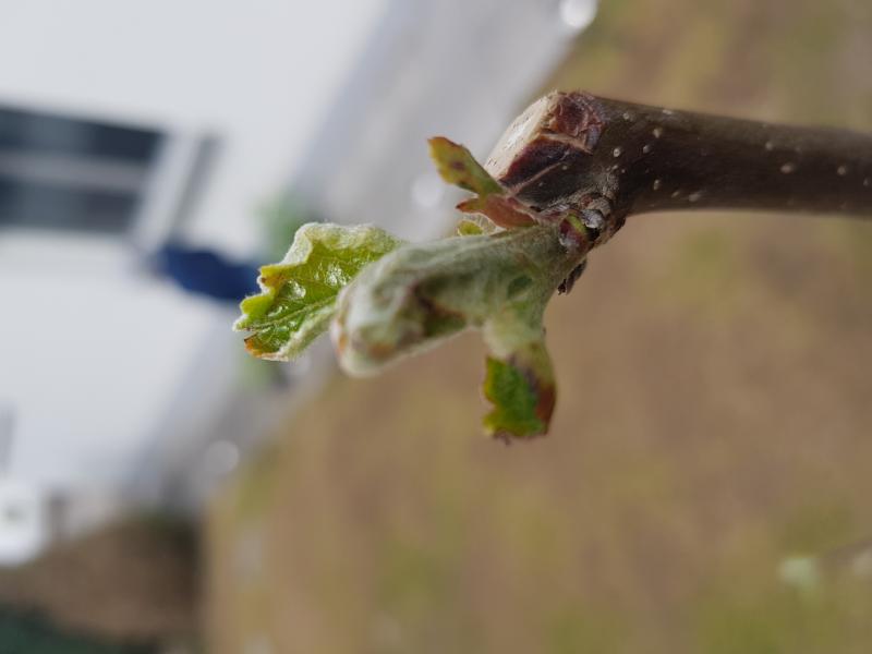 An meinem frisch gepflanzten Apfelbaum sprießen die ersten Blattknospen. Leider sind sie löchrig und am Rand angefressen und schwärzlich/bräunlich. Habe auch eine braun/schwarze Raupe entdeckt und kleine dünne Insekten ähnlich wie Gewittertierchen.