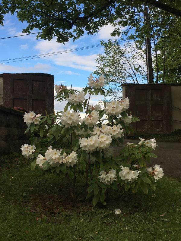 Anhaltender Regen ist blöd, wenn man draussen gern was machen möchte. Obwohl es deinen Fotomodellpflanzen sichtlich gefällt, das nasse Wetter. Der einzige hier ausgepflanzte Rhododendron gibt sich die Ehre.