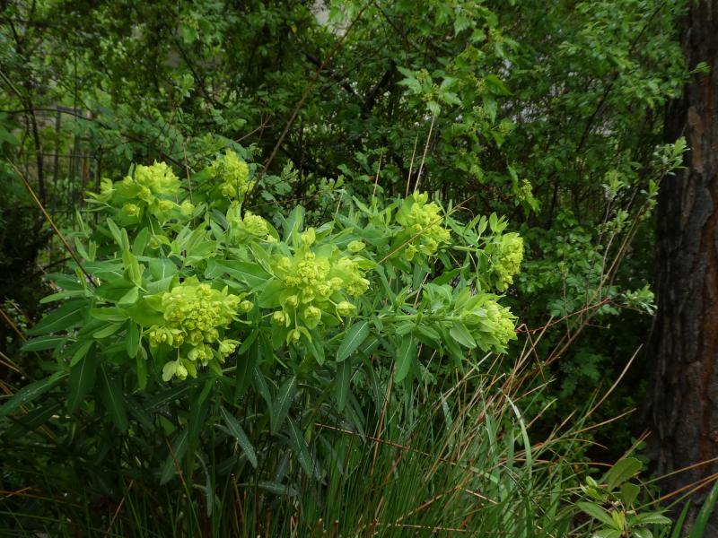 Die von GG so heißgeliebte völlig schief gewachsene Salix caprea pendula habe ich dieses Jahr radikal zurückgeschnitten. Die wirr gewachsenen Äste fand ich zu schade für den Schredder. Also habe ich sie ihr zu Füßen gelegt, dorthin, wo sich merkwürdige Pflanzgemeinschaften etabliert haben. Zur Zeit sieht das ganz gut aus (wenn auch nicht für Ordnungsfanatiker). ;D