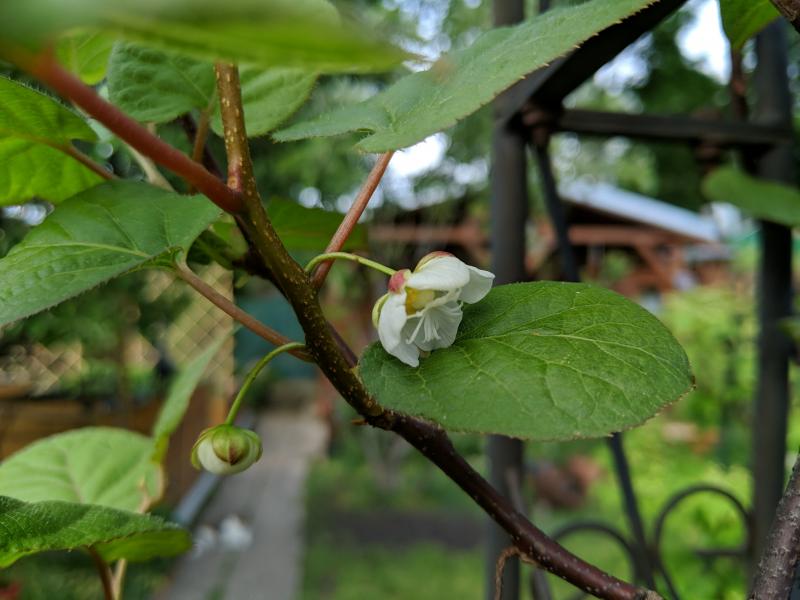 Die Kolomikta Aromatnaya fand es heute gleich so schön dass sie die ersten Blüten geöffnet hat. Leider sind bei meinem Kiwi Männchen noch alle Knospen -und davon gibt es hunderte- zu, ich hoffe dass sich das bald ändert. Letztes Jahr ist es sich für eine Bestäubung noch ausgegangen.