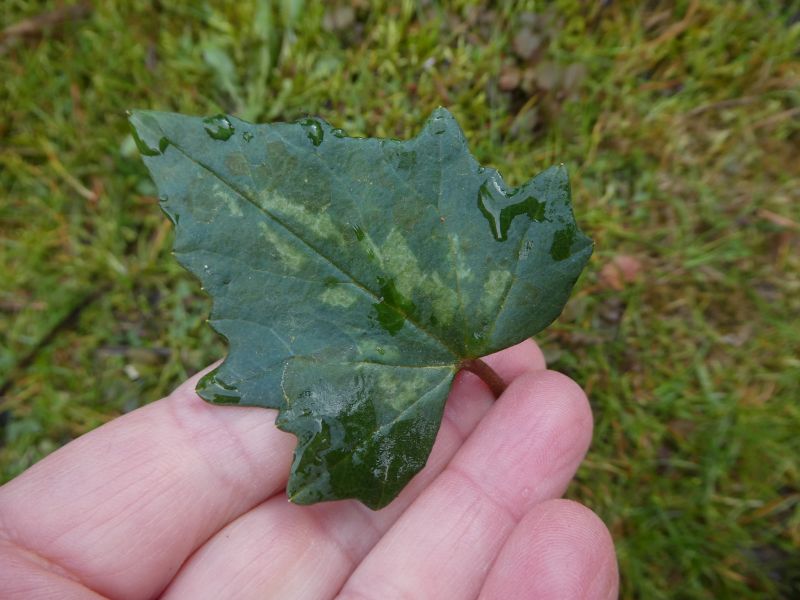 Es sind zwei Pflanzen in einem Topf mit sehr unterschiedlichen Blättern. Die Blätter der einen kann man ja auf dem vorherigen Foto gut sehen, die der anderen sehen so aus: