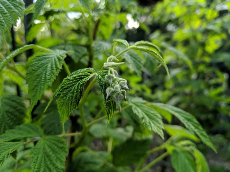 Die Himbeeren (am Bild die Sorte Malling Happy) haben schon reichlich Blütenknospen angesetzt.