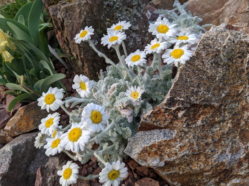 Das Pyrethrum leontopodium ist großartig. Du hast es ausgepflanzt? Bei mir war es, sowohl im Freien wie unter Glas, mikrig und kurzlebig.