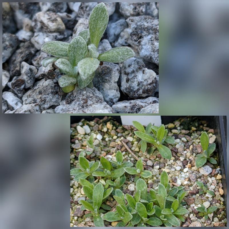 Schon bei den Jungpflanzen ist der Unterschied zwischen den beiden Leontopodium nivale deutlich zu erkennen. Oben die stark behaarte Schönheit aus den Abruzzen, unten die Normalform...etwas grünlicher. Die werde ich gleich mal pikieren.