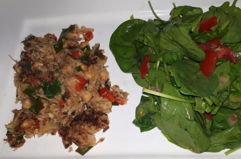 Heute gab's zusammengebratene Reste und Spinatsalat mit Tomaten