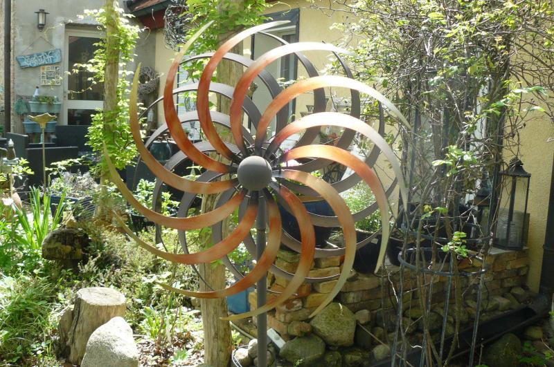 Bei Garten"Kunstwerken" sollte man vorsichtig sein - schnell wirkt ein Garten überladen oder gar vermüllt ;). Finde ich.