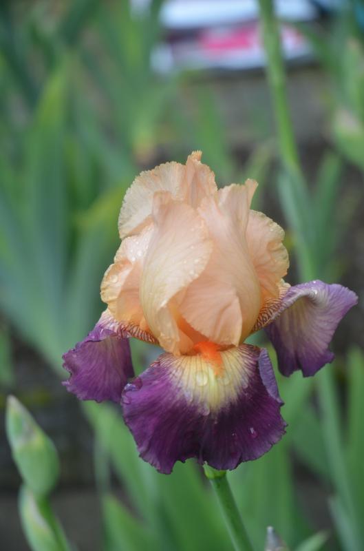 Meine einzige Iris hat jetzt zwei Jahre nach dem Einpflanzen geblüht. Sie hat sogar Hagel und Regen überstanden. Ich fand die Farben so schön.
