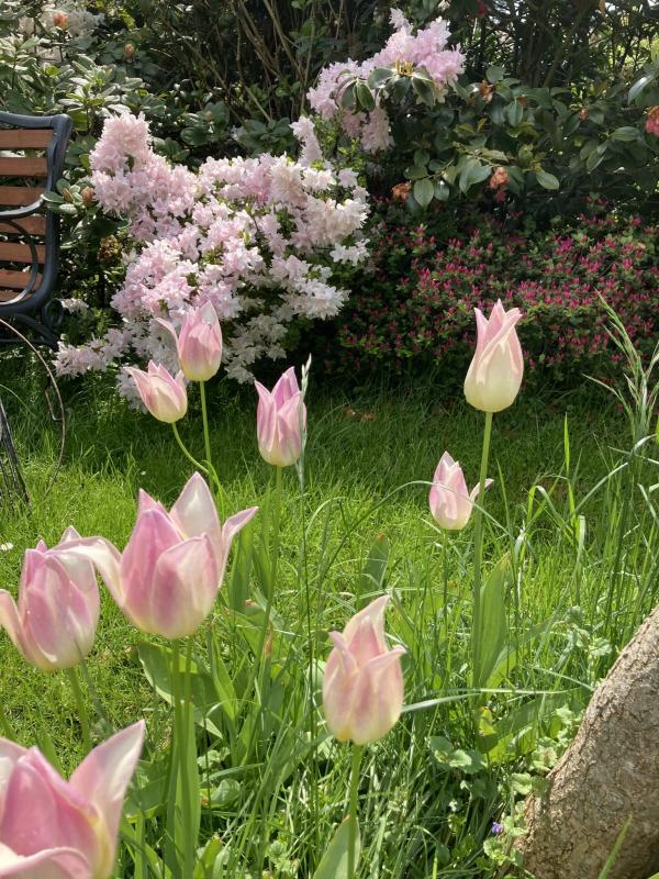 Habt ihr denn einen guten Tipp für Tulpen, die zeitgleich mit Zieräpfeln blühen und diesen rosa-weißen Verlauf haben? Meine Flaming Purissimas passen von der Blütezeit her, aber in manchen Jahren sind sie kreischrot und gar nicht dezent.....