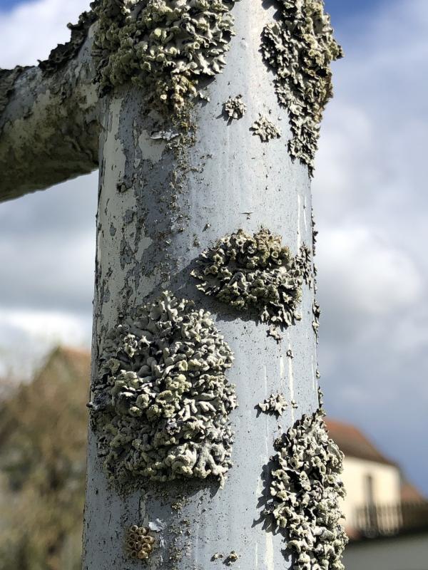 Hier sind übrigens überall Flechten, auf Steinen, an den Bäumen und auch auf dem bloßen Metall für die Wäscheleinen. Sieht lustig aus!