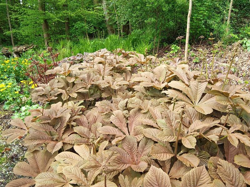 Meine größte Schattenstaude ist Symphytum grandiforum. Eigentlich für meinen kleinen Garten zu groß, da sie von den Insekten besonders Hummeln so geliebt wird und ein dekorativer Hintergrund für das Teichufer ist, darf sie bleiben und wachsen.