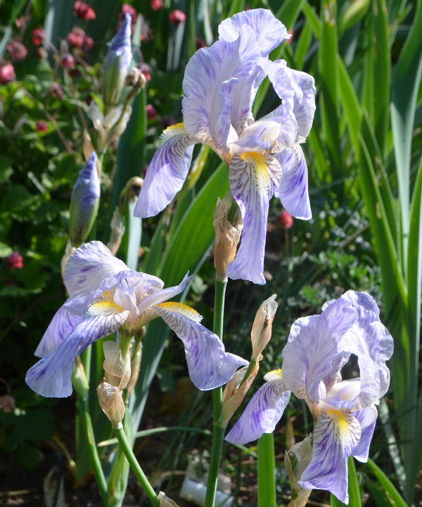 PBF kam durch die Einkreuzung von I. Variegata. Es gibt inzwischen fast 700 Züchtungen die dieses PBF aufweisen und es kommen jährlich einige dazu. Meistens ist die Blattbasis rötlich eingefärbt, Blütenknospen haben einen rötlichen Rand und sind manchmal fast komplet rötlich überzogen. Bei einigen Sorten sind sogar die Rhizome rötlich eingefärbt. Und es stimmt, es ist wirklich eine gute Hilfe bei der Identifizierung namenloser Iris.