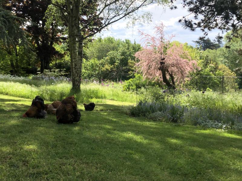 Wetterbedingt ist es zur Zeit leider schwierig, Fotos vom Garten zu machen, nur allzu oft ist es trüb, regnerisch und vor allem stürmisch, so dass mir bestimmte Einblicke, wie z. B. von den Schwertlilien und Dichternarzissen im Vorgarten, einfach nicht gelingen wollen. Heute Vormittag habe ich einen kleinen Rundgang mit der Kamera gemacht und wenigstens ein paar passable Bilder gemacht. Diesmal bin ich zur Haustür 'raus und dann nach unten in den Garten gegangen.