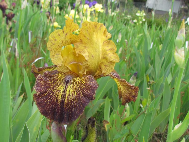 IB `Swizzle´ ist hier immer ein echtes Blühwunder und bezüglich der Länge die beste IB. Mit Abstand und weit vor Morgendämmerung, auch wenn der Vergleich hinkt. Jetzt nach einigen paar Jahren Standzeit wird aber doch die Zweiteilung der Horste sichtbar. Eine unblühende vergreiste Hälfte, die andere ist jünger und vitaler.