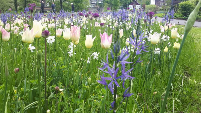 Mich interessiert, was nach dem Abblühen der Tulpen passiert. Ob die Wiesen dann komplett gemäht werden, oder ob noch weitere Stauden und Gräser auftauchen. Das würde ich in den nächsten Wochen gerne mal checken. :D