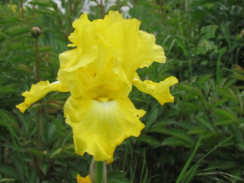 Das ist doch 'Morgendämmerung' oder was meint Ihr? Ich hatte vor zwei Jahren fast alle Iris nach einer wirklich enttäuschenden Saison aufgenommen, die Rhizome gut gesäubert, und wieder eingepflanzt, einige allerdings erstmal zwischengeparkt - wie man sieht im Gemüsegarten. Sie legten gut zu, aber fast die ganze Irisblüte fiel letztes Jahr den Maifrösten zum Opfer. Dieses Jahr hat es reichlich Knospen und fast keine Schilder mehr. Die Krähen haben wirklich ganze Arbeit geleistet, Winter muss langweilig sein.