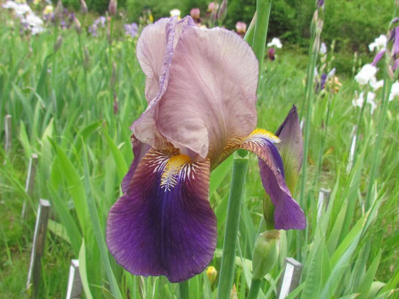 Das ist doch 'Morgendämmerung' oder was meint Ihr? Ich hatte vor zwei Jahren fast alle Iris nach einer wirklich enttäuschenden Saison aufgenommen, die Rhizome gut gesäubert, und wieder eingepflanzt, einige allerdings erstmal zwischengeparkt - wie man sieht im Gemüsegarten. Sie legten gut zu, aber fast die ganze Irisblüte fiel letztes Jahr den Maifrösten zum Opfer. Dieses Jahr hat es reichlich Knospen und fast keine Schilder mehr. Die Krähen haben wirklich ganze Arbeit geleistet, Winter muss langweilig sein.