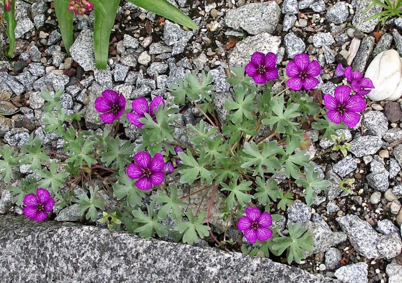 Etliche unbefriedigende Versuche habe ich mit Geranium argenteum hinter mir. Diese Form 'Rubrum' (von Sündermann) scheint aber gut zu wachsen und zu blühen. Ich hoffe, es ist die echte Art.
