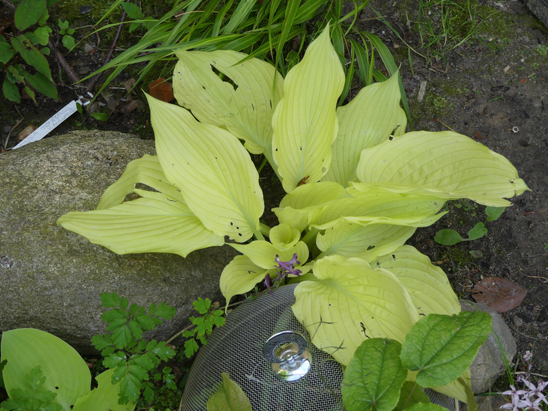 Wisst ihr vielleicht, wie die Hosta heißt? Die ist noch klein und verändert sich vielleicht noch, wenn sie größer wird. Momentan wird sie auch arg bedrängt von den Nachbarn.
