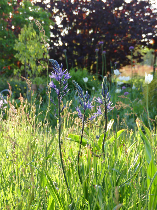 Camassia leichtlinii hält sich in der Frühblüherwiese ganz gut.