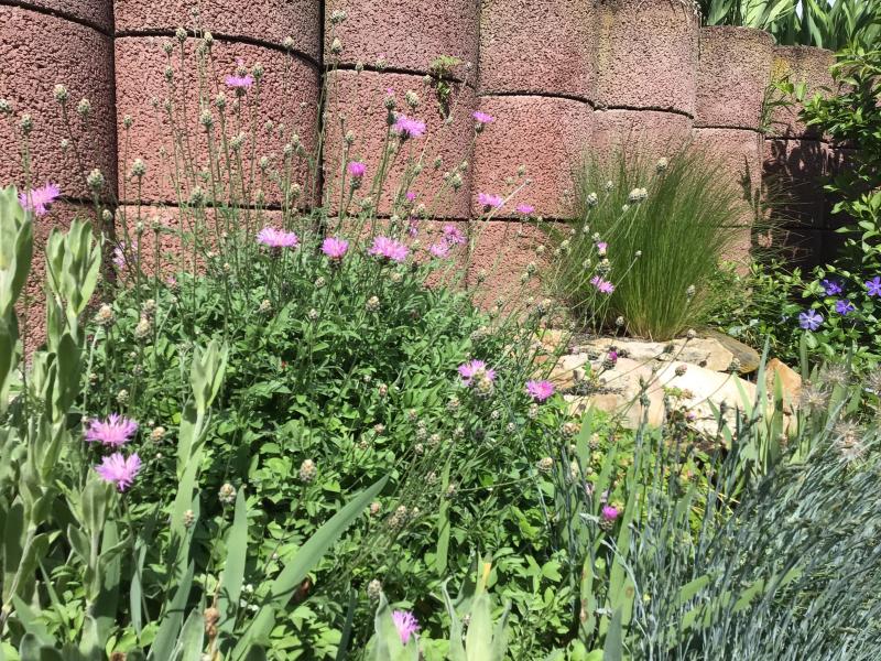 In den letzten Tagen ist eine Centaurea aufgeblüht, die ich vor einigen Jahren an eine der trockensten Stellen in meinem Steingarten gepflanzt habe. Das Polster ist immergrün, die Blüte im Mai Juni rosa immer hoch über dem Polster.