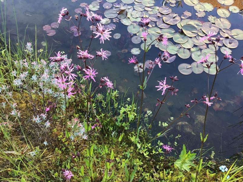 Heute haben wir endlich wieder Sonne. Es ist der zweite Tag im Mai an dem man im T- Shirt durch den Garten gehen kann und Fotos mache. Am Teich blühen jetzt die Kuckuslichtnelken.