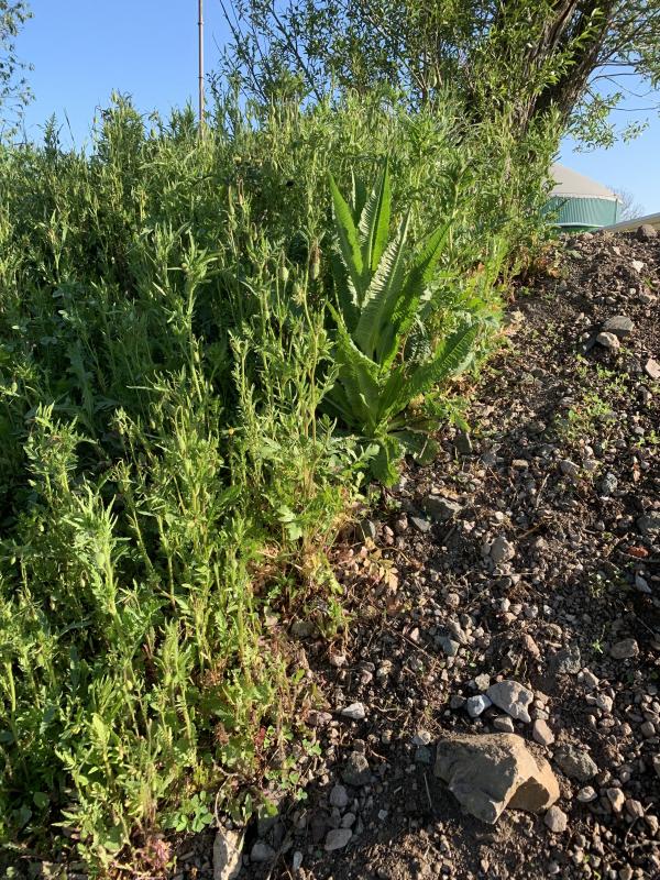 Karde nur vereinzelt, den Hauptanteil vorm Jäten machen Kamille, Mohn und Klettenlabkraut aus. Dazu Lattich, Taubnessel, Gundermann, Gräser, Erdrauch, Gewöhnliches Greiskraut, Brennnessel und Knoblauchrauke.
