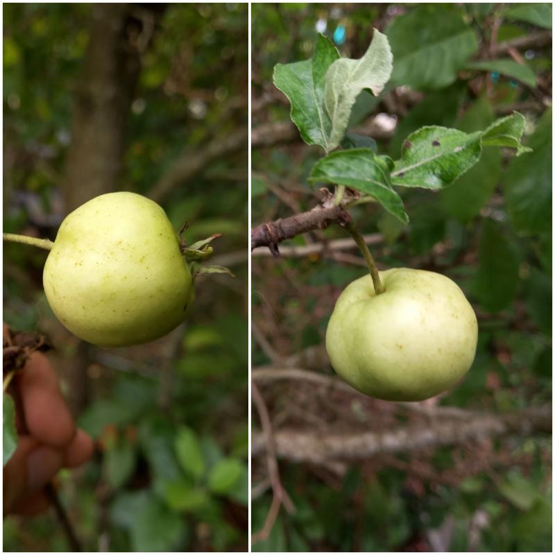 Letztes Jahr hat bei mir die M9 (paradis jaune de metz) einen Apfel gegeben. Kurz gesagt, nicht sehr aussagekräftig. Er war klein, gelb und stark nach Ananas duftend.