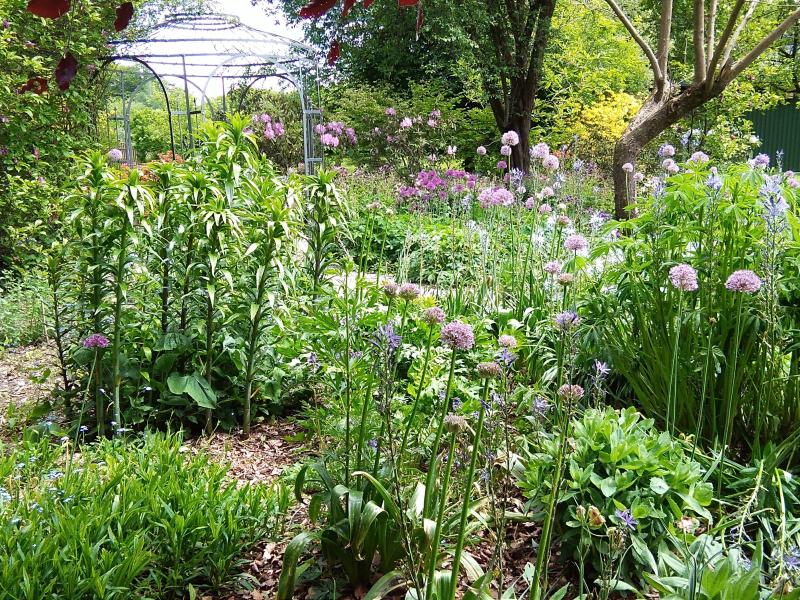 ... Jetzt füllt 'Purple Sensation' eine Lücke, die sonst die Akeleien fast allein bestreiten... Dank an Staudo für den Tip, die Pflanzen auch im Halbschatten und Schatten zu verwenden.
