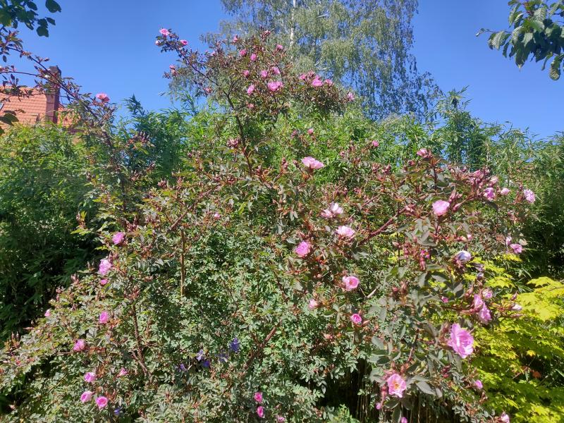 Hier blüht noch nicht einmal eine R.pimpernellifolia 'Mary Queen of the Scots'.Die ist hier immer die Erste.