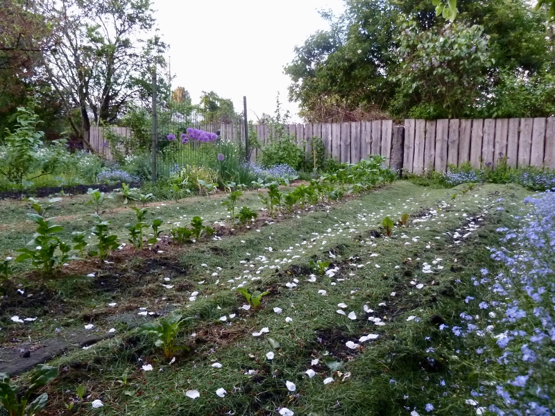 Hier kommt der Gemüsegarten nach dem kühlen Frühjahr langsam in Fahrt ...