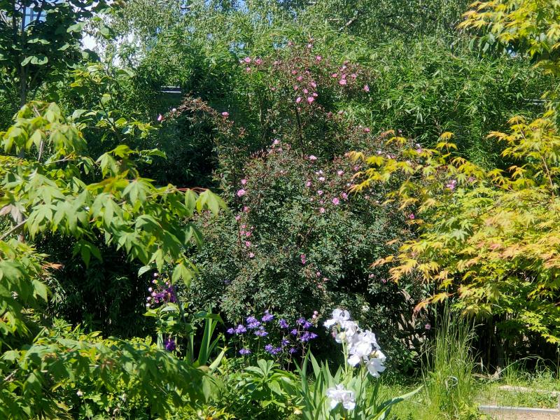 Zwischen der hellen und der dunklen Wieseniris am rechten und linken Bildrand standen mal Taglilien. Möglicherweise gibt es von denen noch Reste, gedeihen wollten sie nicht, Situation nicht befriedigend!